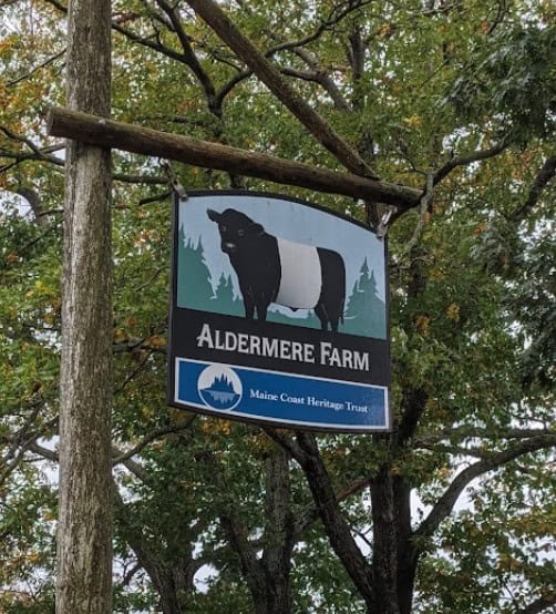 Owned and preserved by the Coastal Mountains Land Trust, Aldermere Farm is open to the public year-round. Visitors are welcome to walk the paths, explore the open fields, and watch the cows graze peacefully with Penobscot Bay just beyond the trees.