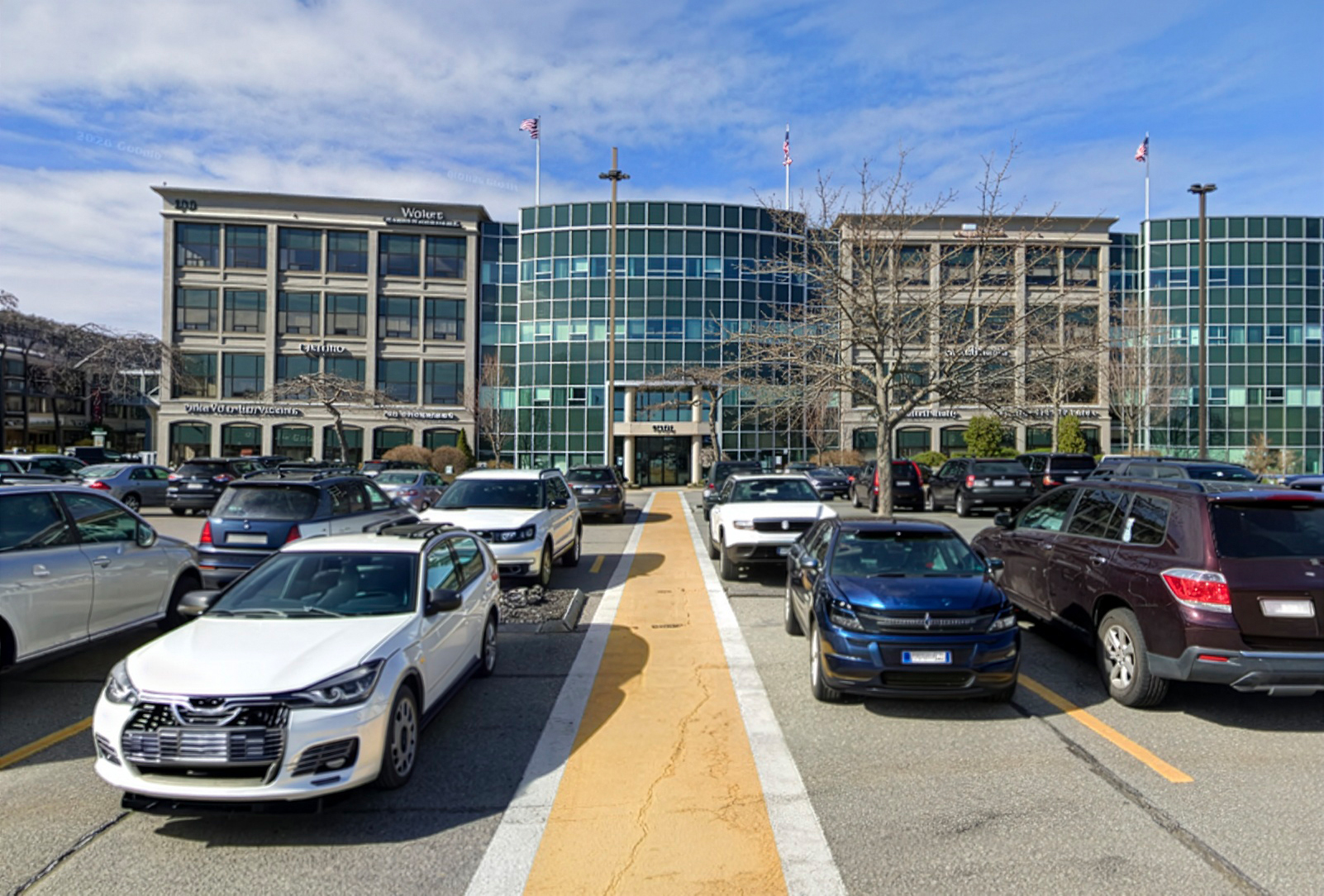 The Cummings Center is now one of the largest office complexes in New England, with dozens of interconnected buildings and hundreds of tenants. The exterior still reads as early 20th century industry. Inside, it’s been reworked for modern use.