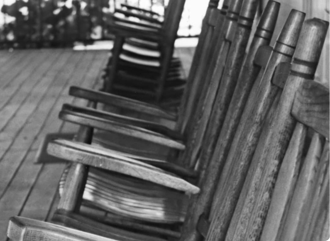 A large man, Buck the graveyard worker who was killed in town following an argument, is often seen on the front porch.
