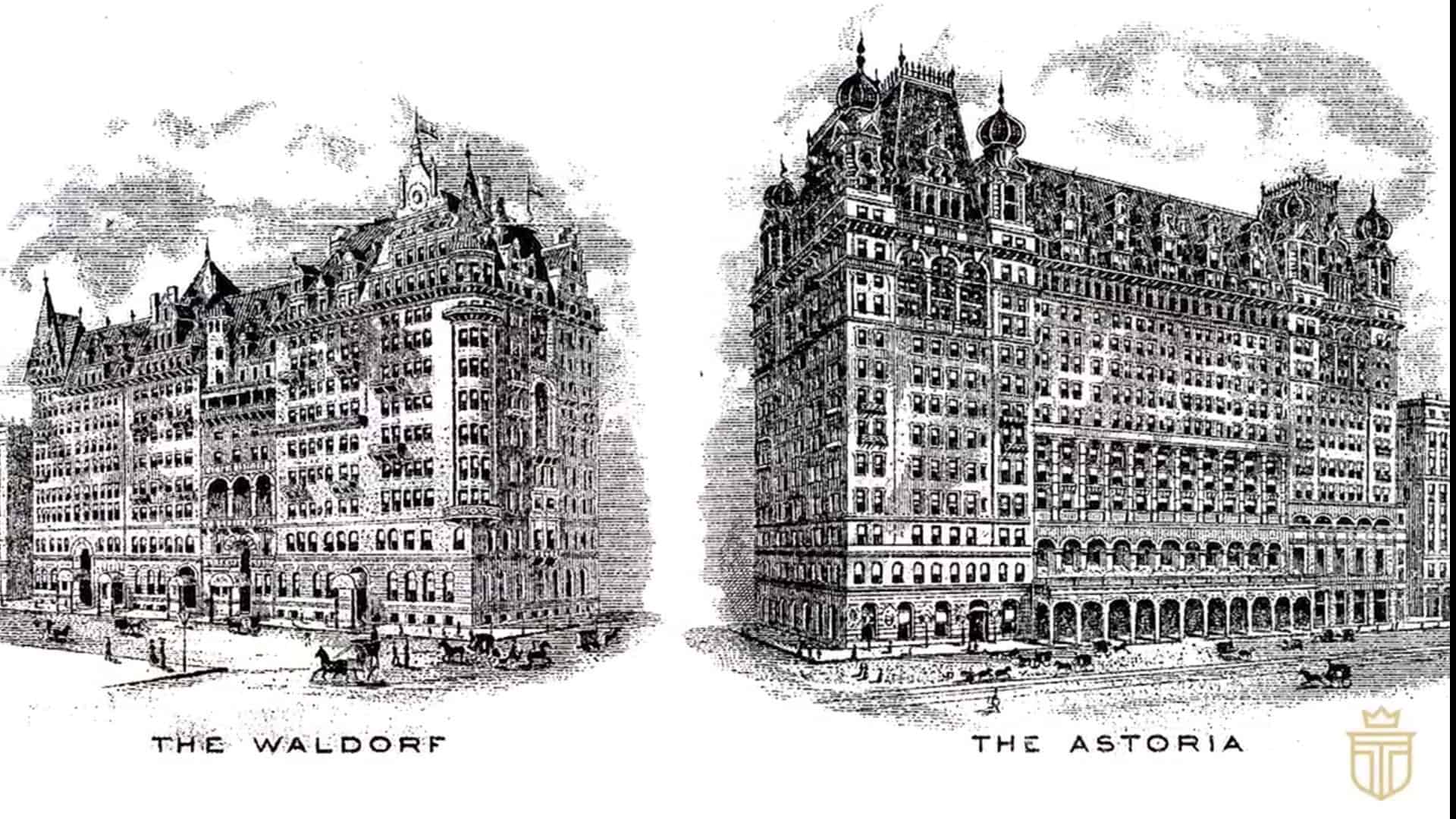 This all began as two rival hotels, built by feuding relatives of the wealthy Astor family.