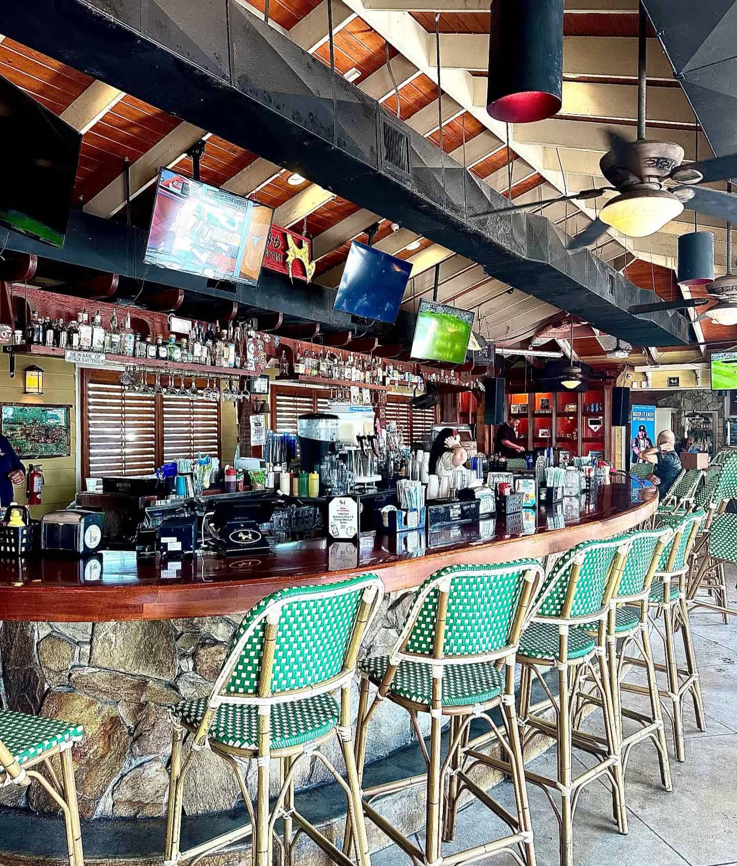 This is a very laid back sports bar that features eight flat screen televisions, and a seven foot projector with surround sound.