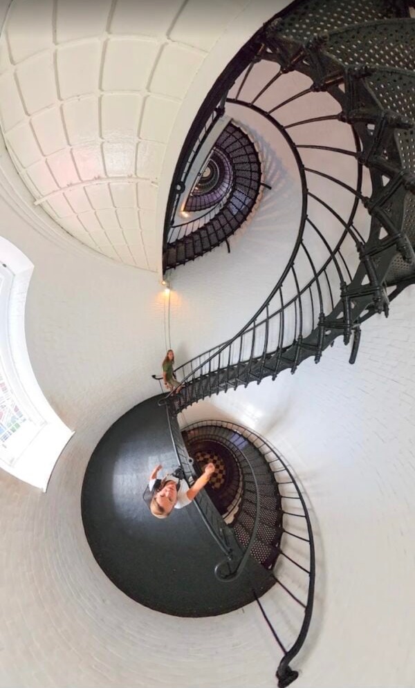 Another evening, a female guest on the dark of the moon tour was standing on the first step of the metal lighthouse staircase, when she took her first step to climb the tower, she found her shoelace tied to the staircase. Whether it was a ghost or companion playing a trick.